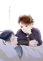 参加アンソロ 2015年 「HQ MIX!! 2 (Philippe Comics) 」 及影再録2014年 「超攻撃型及川」(Pillippe Comics) 及影再録 「VS.及川 1」(ほくこみ同人アンソロジー) 及影書き下ろし 及川徹&影山飛雄アンソロジー 弱虫ペダル東堂×巻島プチ開催記念アンソロジー 牛島若利×及川徹アンソロジー2013年 「VS.飛雄」(ほくこみ同人アンソロジー) 及影再録 及川徹お誕生日記念アンソロジー 影山飛雄受け漫画アンソロジー「プチキュー!!」開催記念アンソロ「プチコレ!!」 「ラブキュー!!」(OKS COMIX) 及影再録2012年 ![]() ![]() ![]() 発行物 ![]() 「左上の猫」 A5 P28 \300 2015/5/4発行 及川徹×影山飛雄 及影小説本。 及川が卒業して青城へと進学し、飛雄が中学二年生に進学した春。 久々に及川に合いたくて自宅を訪れた飛雄は、及川の自室で子猫に出会う。 及川さん、と呼べばみゅーと鳴く子猫を、及川の母親が「とおる」と呼ぶ。 好きなおもちゃは、バレーボール。 ……どうやら、及川徹は「猫」になってしまったらしい。 単発のハピエン及影です。 ![]() 「活殺自在の恋愛メソッド」 A5 P28 \300 2015/3/15発行 及川徹×影山飛雄 及影小説本。 2019年のホワイトデー。25歳の及川と23歳飛雄の、大人及影パラレルです。 二人はもちろん、その他のキャラの進路も少し出てきます。潔く、全てねつ造。 性描写は無いため年齢制限は設けておりませんが、R15程度の大人向け。 コミックス未収録号まで踏まえた内容ですので、コミックス派の方はご注意ください。 ![]() 「及川徹が攻略できない!!」 A5 P28 \300 2015/1/25発行 及川徹×影山飛雄 R18 及影小説本。 中二のお正月休み、飛雄は先輩である岩泉に相談をする。 「及川さんの弱点を教えて下さい!」 どれだけ手を伸ばしても届かない及川は、飛雄にとってあまりに遠い存在だった。 その帰り道、及川に出会った飛雄は、雪見祭りに誘われる。 「憧れ」がテーマの高一及川と中二飛雄の、冬のお話。 ![]() 「いつか見た畏怖の世界」 B5 P32 \500 2014/12/28発行 及川徹×影山飛雄 夏コミに発行した「いつか見たifの世解」の続編。 事故で屋上から落ちて北一中のバレー部員だった頃のifの世界に迷い込んだ飛雄。 その世界では及川も岩泉もバレーをしていなかった。 それでも及川に会いたい一心で、飛雄は青城へと走る。 (前編と合わせて委託中です→とらのあな、ケイブックス、フロマージュ) ![]() 「人ごみの中の君に告ぐ」A5 P24 \300 2014/10/12発行 及川徹×影山飛雄 R18 FHQ及影小説本 湖のほとり、森に住むトビオの村を、ある夜燃えさかる炎が飲み込んだ。 そこに現れたのは、魔族の長、オイカワ。 村を救う代わりに神への供物として魔族に差し出されたトビオにオイカワが問いかける。 「ここに残るか? それとも――」 既刊FHQ本「スコルピオスを撃て」とはまた違う世界設定のFHQねつ造本です。 *:;.;:*:;.;:*:;.;:*:;.;:*:;.;:*:;.;:*:;.;:*:;.;:*:;.;:*:;.;:*:;.;:*:;.;:*:;.;:*:;.;:*:;.;:*:;.;:*:;.;:*:;.;:*:;.;:*:;.;:*:;.;:*:;.;:*:;.;:*:;.;:* 【完売タイトル】ありがとうございました!! 2014年 「星降る音の美しきかな」 「スコルピオスを撃て」 「romance loreley」 「夜空で君と待ち合わせ。」 2013年 「セツナサレンササイレンサー」 「青葉城西へようこそ!!/Wellcome to JOHSAI!!」 「及川くんがえっちなことされてる本」 「疾走ヒロイン」(小説) 「純愛ヒーロー」(小説) 「花落つる事知る多少」 「Project xKamba」 2012年 「Bon appetit!/お弁当箱で、朝食を。」(小説) 「Stand by my side」 「いくじなしエレジー」 「Project K」 「Magnetic twins」 「踊るペンギンとラブ」 |